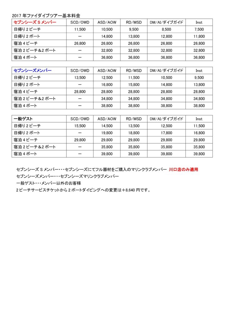 ★2ビーチサービスチケットから2ボートダイビングへの変更は+8,640円。