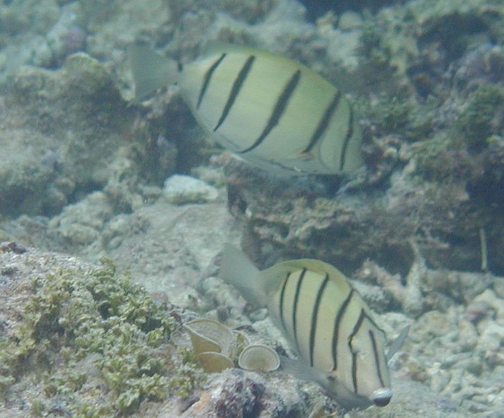 体色はクリーム色で、黒色の細い横縞が5 ~6 本入ります。