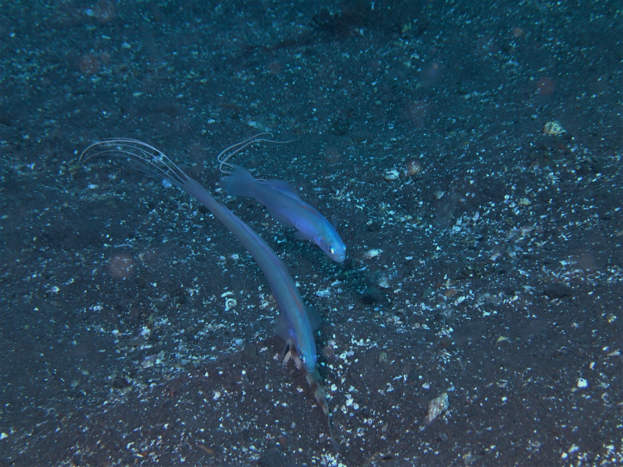 尾ビレが糸状に長くのびています。
