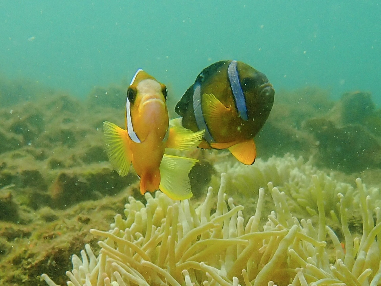 手前にはクマノミ3個体。