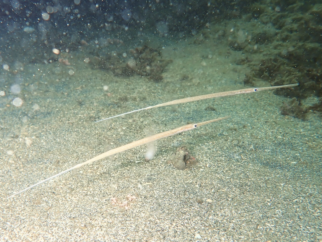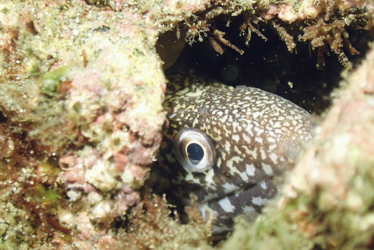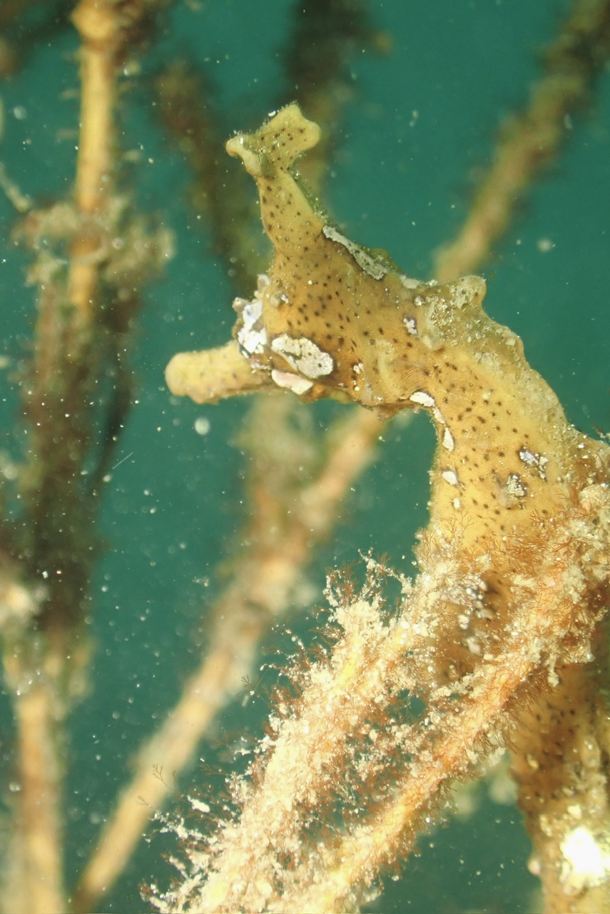 タツノオトシゴ、タツノイトコ、コケギンポ、カエルアンコウ、ハタタテダイ、キタマクラ、クロイシモチ、ネンブツダイ、オオモンカエルアンコウ(黒:2㎝)、たまにハナミノカサゴ、ミノカサゴ、ミナミハコフグ(幼魚)、イソコンペイトウカニ、ミツボシクロススメダイ、ソラスズメダイ、ボラ、キュウセン(雄、雌)ゴンベイ、クロイシモチ、の交配シーン、ショウジンガニ、ネンブツダイ、アオリイカのハッチアウトなどが見られます。