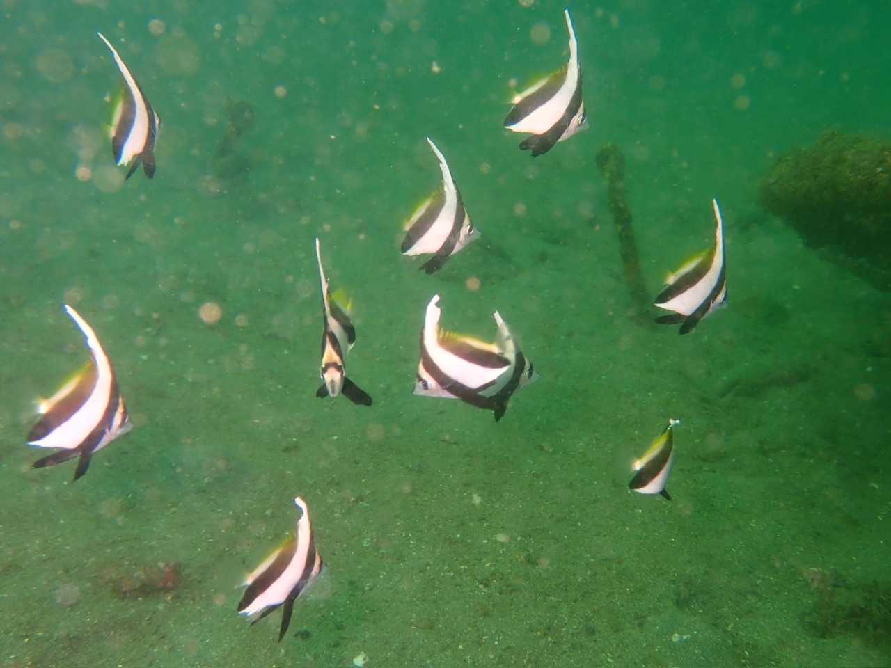 タツノオトシゴ、タツノイトコ、コケギンポ、カエルアンコウ、ハタタテダイ、キタマクラ、クロイシモチ、ネンブツダイ、オオモンカエルアンコウ(黒:2㎝)、たまにハナミノカサゴ、ミノカサゴ、ミナミハコフグ(幼魚)、イソコンペイトウカニ、ミツボシクロススメダイ、ソラスズメダイ、ボラ、キュウセン(雄、雌)、ホタテウミヘビ、クロイシモチ、の交配シーン、ニシキフウライウオ、カミソリウオが見られます。