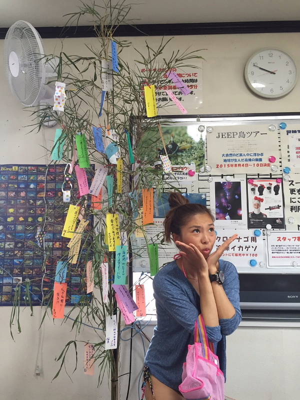 さまざまな思いを短冊に。お願いごとをしましょう! 城ケ島天候:雨今朝からビーチにもウネリが入り始めました。気温 23℃水温 ビーチ20~22℃ 昨日の透明度 ビーチ4~6m潮回り 小潮風向き 北東警報/注意報 なし
