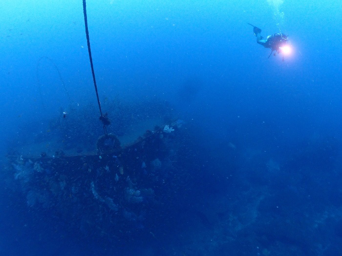 沈船には無数の魚が群れを成してすんでいます